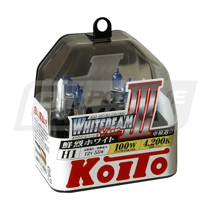 KOITO Whitebeam III H1 12V 55W (100W) - галогенная лампа головного света повышенной яркости. Свет, как от ламп с мощностью 100W.
